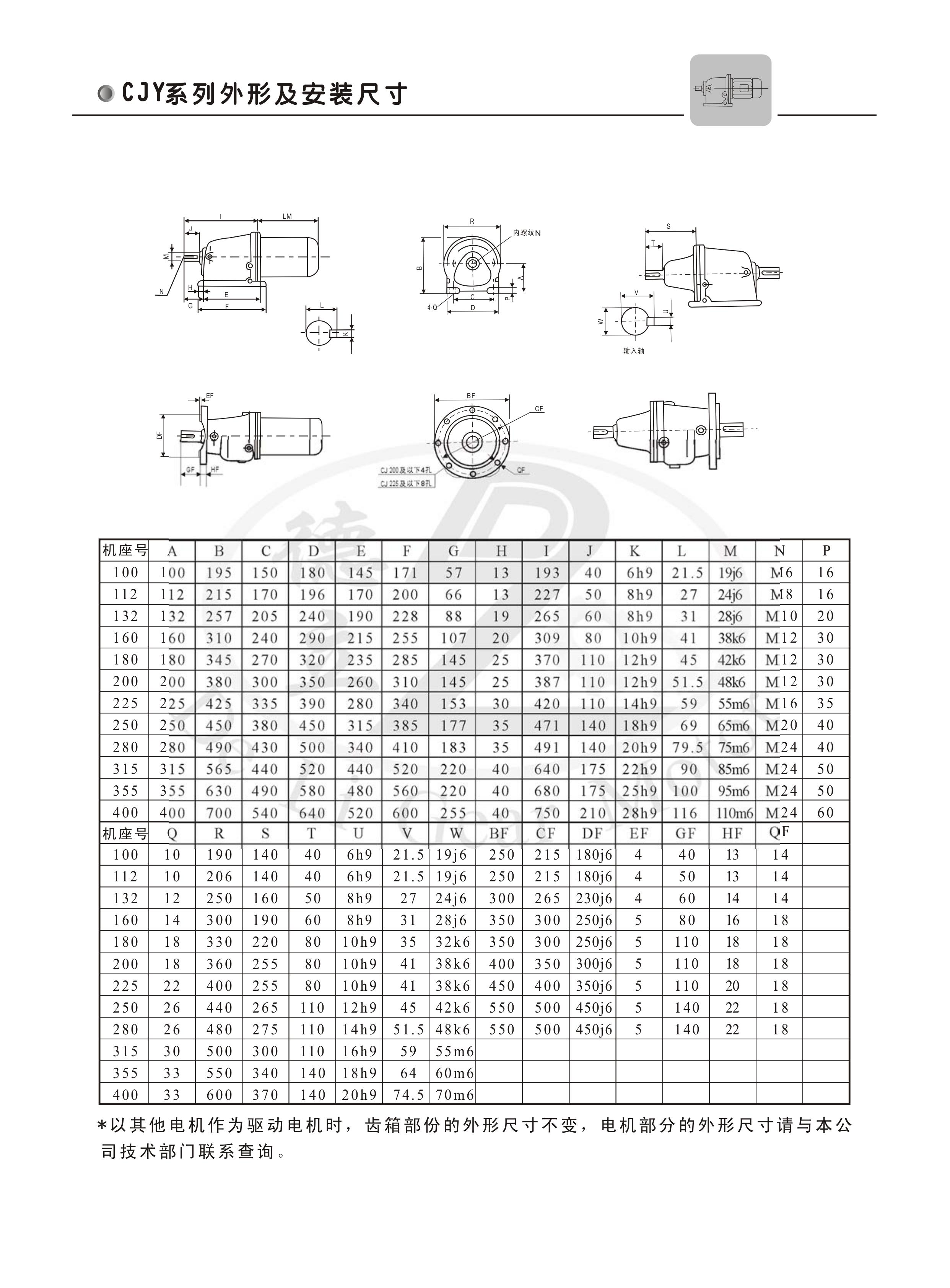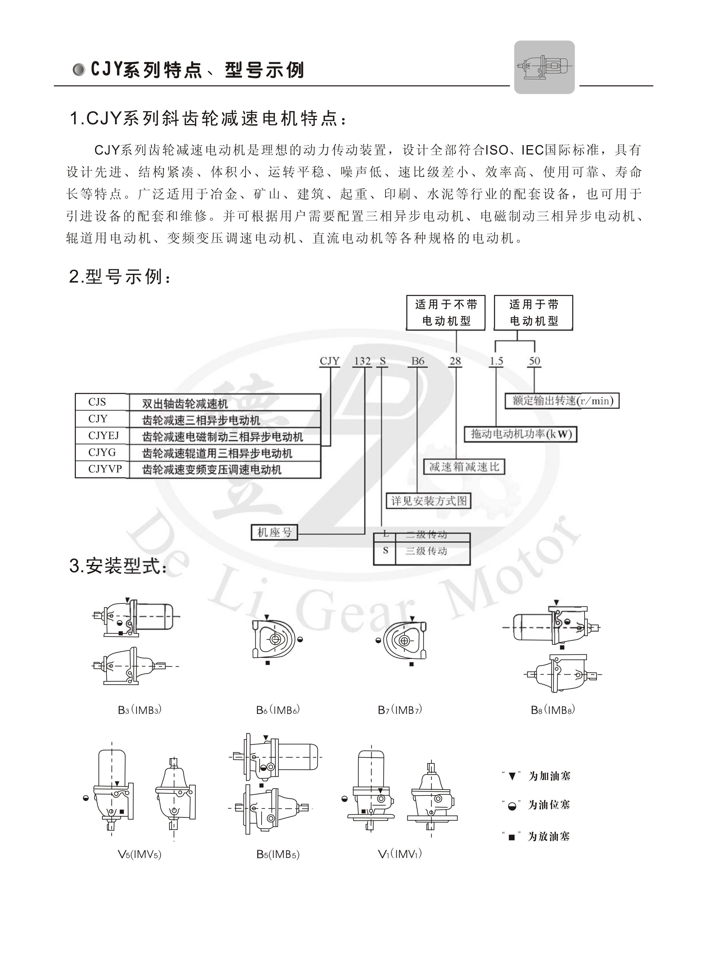 CJY系列斜齒輪減速電機簡介:CJY系列斜齒輪減速電機產(chǎn)品符合ISO、IEC國際標(biāo)準(zhǔn),設(shè)計先進、結(jié)構(gòu)緊湊、體積小、使用方便、噪聲小、效率高、使用可靠、等等特點。使用該產(chǎn)品同時客戶可以根據(jù)自